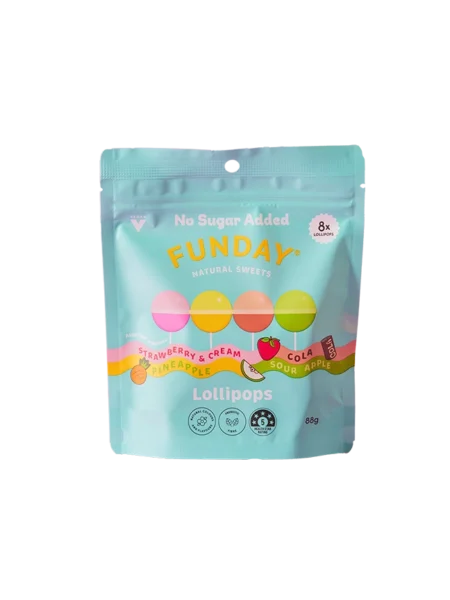 At FUNDAY, we’ve found the sweet spot. Enjoy the no-sugar added, good for you lollies you’ve been longing for! Treat yo-self to 100% natural lollies that are packed with real fruity flavour.